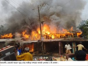 আমতলীতে আগুনে পুড়ে ৭ টি দোকান ছাই