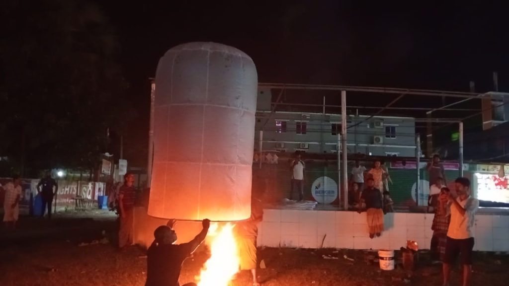 রাতের আকাশ বর্ণিল হয়ে উঠলো প্রবারনা পূর্ণিমার নানা রঙের ফানুস