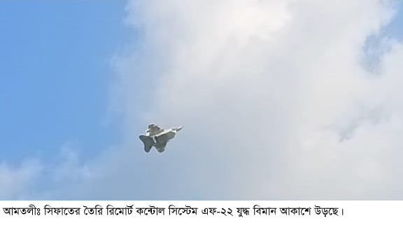 সোমবার দুপুরে খুদে বিজ্ঞানী সওকত ইসলাম সিফাতের এমন সৃষ্টিকর্ম সরেজমিনে ঘুরে দেখাগেছে। তিনি রিমোট কন্টোল সিস্টেম আমেরিকার তৈরি এফ-২২ মডেলের যুদ্ধ বিমান আকাশে উড়িয়ে দেখান। এ যুদ্ধ বিমান তৈরিতে তিনি রিমোট, রিসিভার, বিএলডিসি মর্টার, সার্ভো মর্টার ও বেটারীসহ নানা যন্ত্রাংশ ব্যবহার করেছেন।