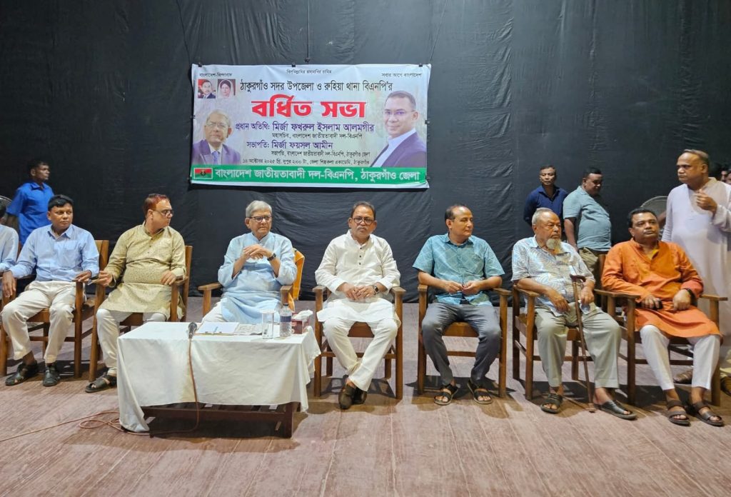 মঙ্গলবার (১৪ অক্টোবর) দুপুরে ঠাকুরগাঁও জেলা শিল্পকলা একাডেমির হলরুমে ঠাকুরগাঁও সদর উপজেলা ও রুহিয়া থানা বিএনপির বর্ধিত সভায় প্রধান অতিথির বক্তব্যে তিনি এ কথা বলেন।