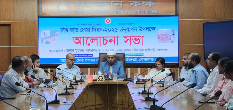 গোপালগঞ্জে হাত ধোয়ার প্রদর্শনী ও আলোচনা সভার মাধ্যমে বিশ্ব হাত ধোয়া দিবস পালিত হয়েছে। জেলা প্রশাসন ও জনস্বাস্থ্য প্রকৌশল অধিদপ্তর এ কর্মসূচীর আয়োজন করে।