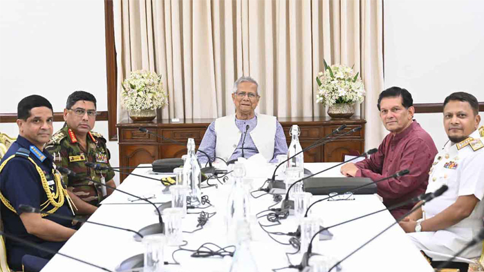 প্রধান উপদেষ্টার প্রেস উইংয়ের পাঠানো বার্তায় জানানো হয়, বৈঠকে জাতীয় নিরাপত্তার পাশাপাশি দেশের আইনশৃঙ্খলা রক্ষায় সামরিক বাহিনীর সদস্যদের কঠোর পরিশ্রমের জন্য সাধুবাদ জানান প্রধান উপদেষ্টা।