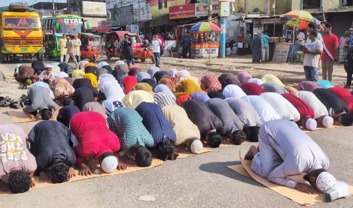 ভৈরবে জেলা ঘোষণার দাবিতে সড়কে নফল নামাজ আদায়