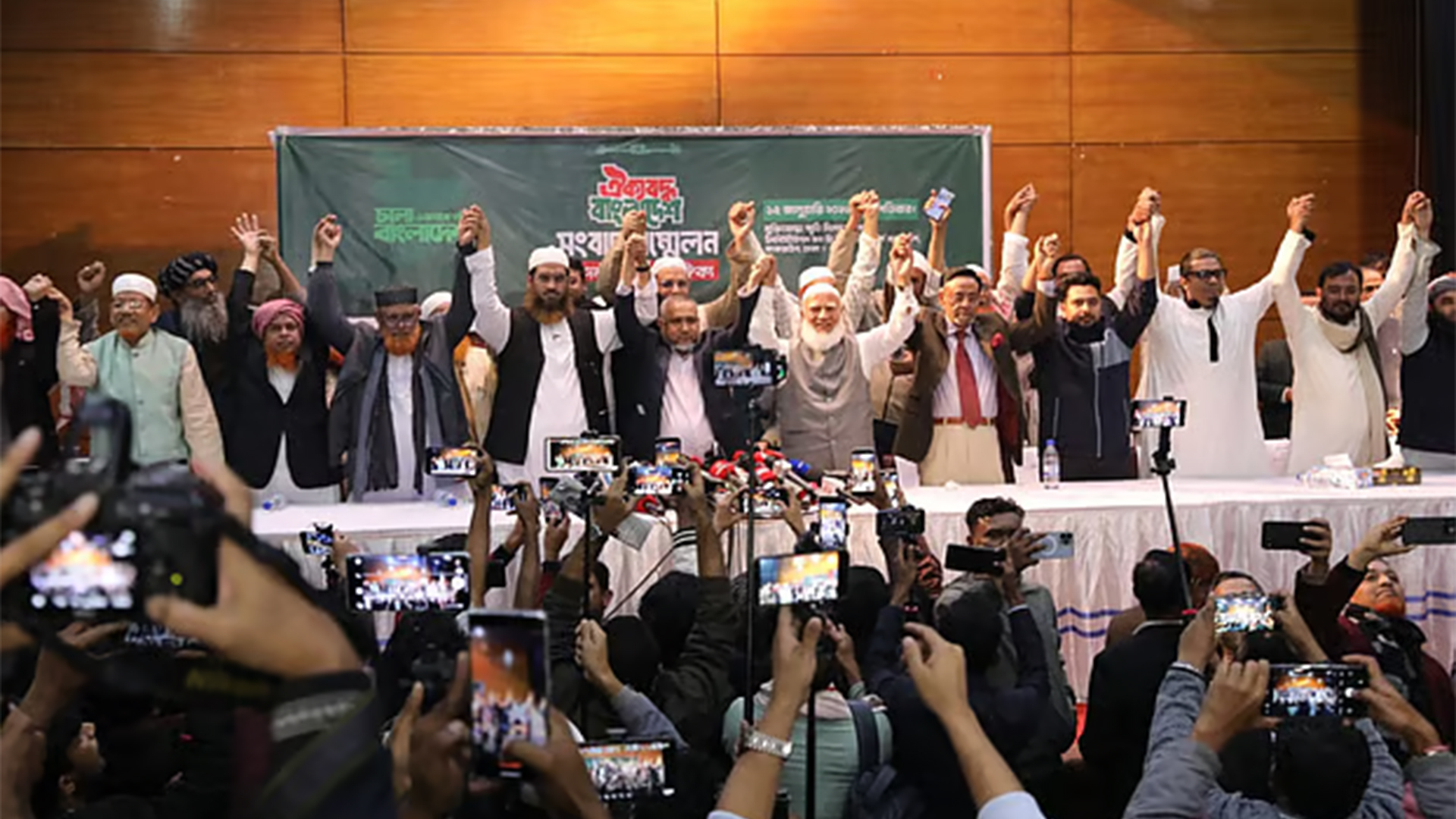 বৃহস্পতিবার (১৫ জানুয়ারি) ইঞ্জিনিয়ারিং ইনস্টিটিউটে আয়োজিত সংবাদ সম্মেলনে দলভিত্তিক আসনসংখ্যা ঘোষণা করেছে ১১ দলীয় জোট। তবে এই সংবাদ সম্মেলনে উপস্থিত হয়নি ইসলামী আন্দোলন বাংলাদেশের কোনো প্রতিনিধি।