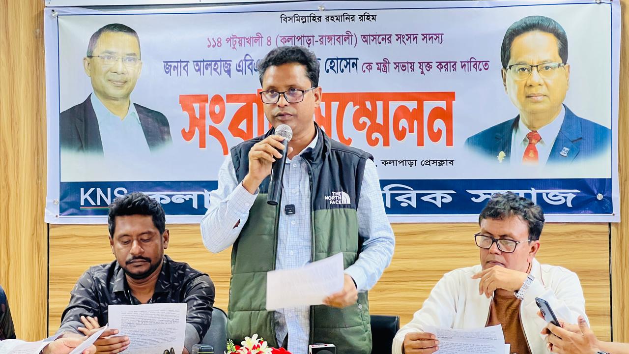 সংবাদ সন্মেলনে কলাপাড়া নাগরিক সমাজের মুখপাত্র মোস্তফা জামান সুজন বলেন, পটুয়াখালী-৪ আসনটি দুইটি উপজেলা, তিনটি থানা, দুইটি পৌরসভার প্রশাসনিক কাঠামো নিয়ে বাংলাদেশের অন্যতম এবং বরিশাল বিভাগের মধ্যে অন্যতম গুরুত্বপূর্ণ আসন। এই আসনে কলাপাড়া উপজেলায় রয়েছে শের-ই-বাংলা নৌ-ঘাঁটি, পায়রা সমুদ্র বন্দর, ১৩২০ মেগাওয়াট পায়রা তাপ বিদ্যুৎ কেন্দ্র, পটুয়াখালী বিদ্যুৎ প্লান্ট, সাবমেরিন কেবল ল্যান্ডিং স্টেশন, রাডার স্টেশন, মৎস অবতরণ কেন্দ্র, পাট গবেষণা কেন্দ্র, মৎস গবেষণা কেন্দ্র ও কুয়াকাটা পর্যটন কেন্দ্র, মা ইলিশ প্রজনন কেন্দ্র ও অভয়াশ্রম। এই জনপদকে পরিকল্পিত ও টেকসই উন্নয়নের জন্য এবিএম মোশাররফ হোসেনের মতো একজন সুদক্ষ, অভিজ্ঞ সংসদ সদস্যকে যে কোন মন্ত্রণালয়ের দায়িত্ব দেওয়া হলে তিনি শতভাগ সফলকাম হবেন।